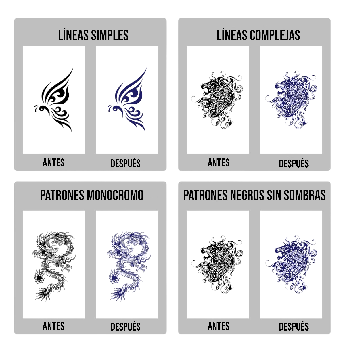 * Se debe utilizar líquido stencil de tattoo para transferir con mayor precisión la imagen a la piel.