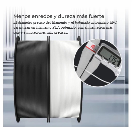 - Colores incluidos: Negro y Gris (2 filamentos de 1 kg cada uno)